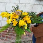 | Informations Au Panier. Fleuri | Votre arrangement floral Au Panier Fleuri, composé de fleurs fraîches, pourra être quelque peu différent du visuel présenté qui a valeur indicative. Votre composition, créée spécialement pour vous par un de nos artisans, est susceptible de varier légèrement en fonction de la sensibilité artistique du fleuriste mais aussi de la saisonnalité des fleurs qui la composent. L’esprit du bouquet, sa forme, ses couleurs ainsi que ses essences principales seront respectés par notre artisan fleuriste qui réalisera, à votre intention, cette création inédite quelques minutes avant de la livrer. |