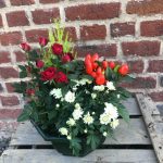 Votre arrangement floral Au Panier Fleuri, composé de fleurs fraîches, pourra être quelque peu différent du visuel présenté qui a valeur indicative. Votre composition, créée spécialement pour vous par un de nos artisans, est susceptible de varier légèrement en fonction de la sensibilité artistique du fleuriste mais aussi de la saisonnalité des fleurs qui la composent. L’esprit du bouquet, sa forme, ses couleurs ainsi que ses essences principales seront respectés par notre artisan fleuriste qui réalisera, à votre intention, cette création inédite quelques minutes avant de la livrer.
